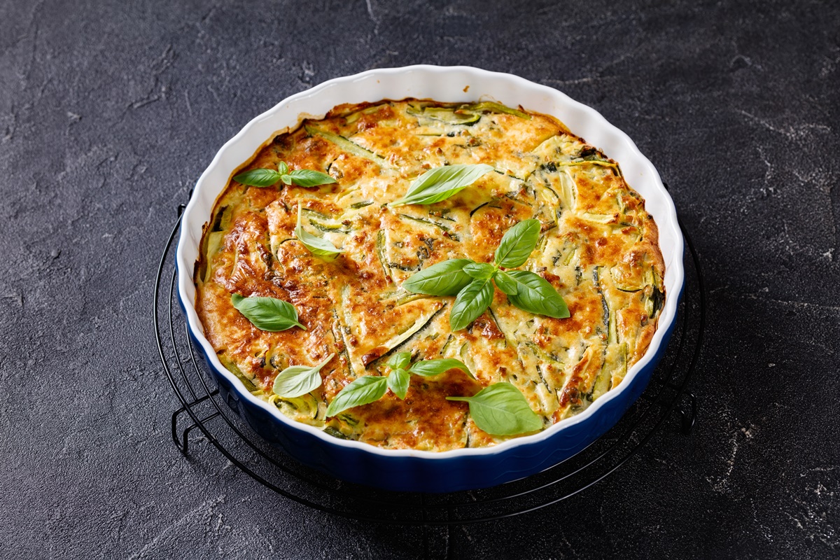 Budincă de dovlecei cu brânză și busuioc