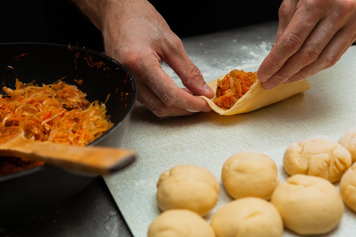 - Plăcintele se modelează sub formă de bile cu umplutură de varză în interior / Shutterstock